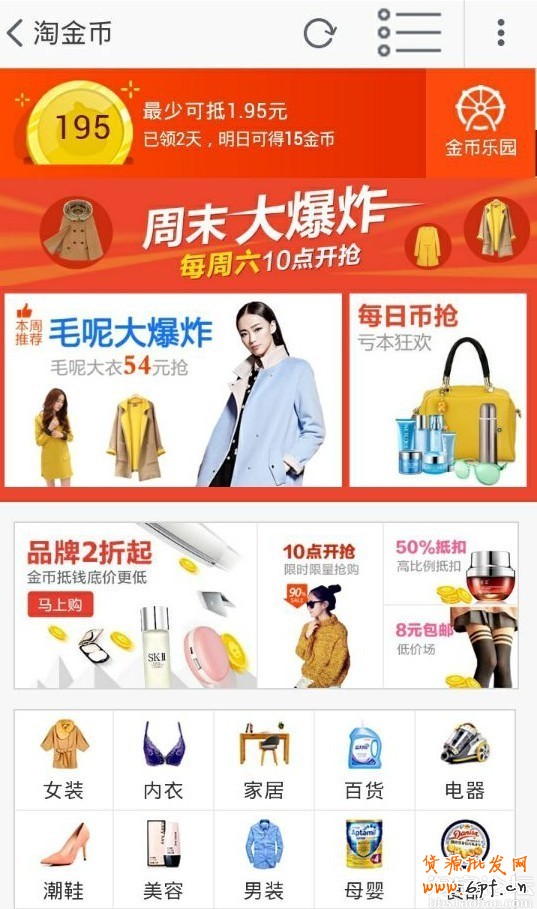 PC端:每周末在淘金币首页左上角LOGO处 #超显眼位置#点击所有淘金币首页的页面都会出现在淘金币页头
