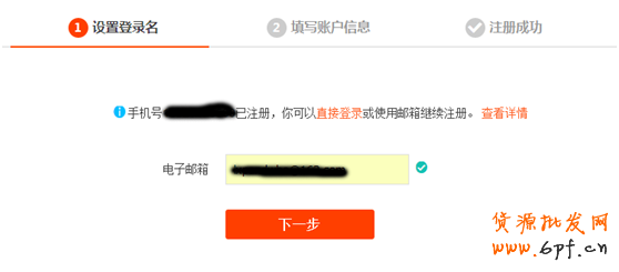 我们进入淘宝网看见左上角的“免费注册”,点击进去填写手机号码和验证码,最后点击下一步。