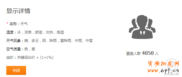 目前设置一个天气人群,可以根据:温度、天气现象、空气质量进行精细化分层,测试天气人群的点击率和花费。