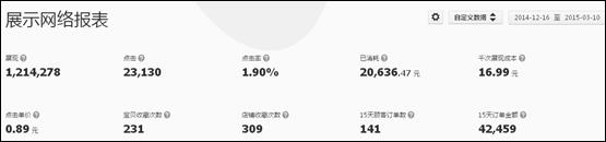 截取了部分的数据,从定向上是种子和自主店铺,在点击率上做的是不错,茶叶行业整体平均CPC在1块左右浮动,我们店铺的cpc还是很不错的。特别需要说的,钻展在刚开始投放的时候是没有点击回报率、展示回报率、订单金额的,这都是投放了一段时间,才开通的,这样我们在分析钻展数据就更详细了。