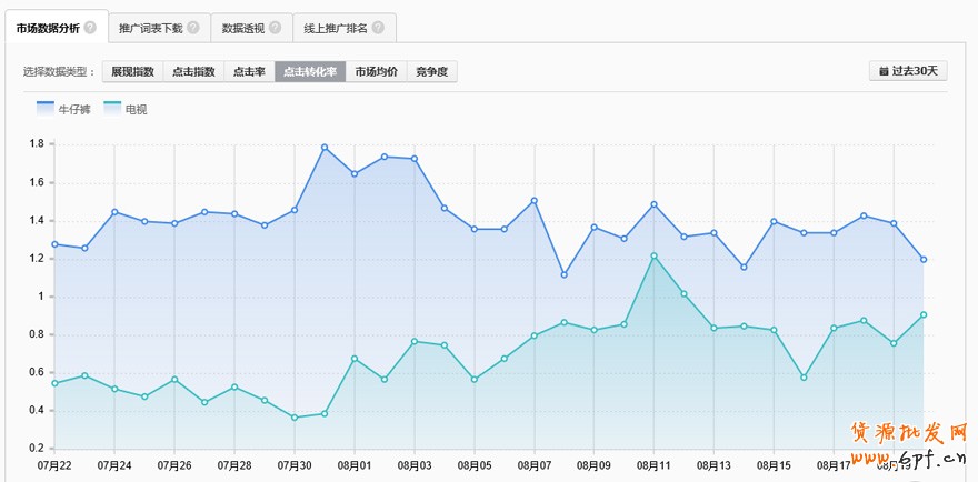 通过这组数据对比,我们可以看到,客户在购买“电视”这种标品时,需求要明确的多,点击率高,但是下单的时候,可就没有买一条牛仔裤那么随心所欲,做决策要谨慎的多,转化率低了不少。