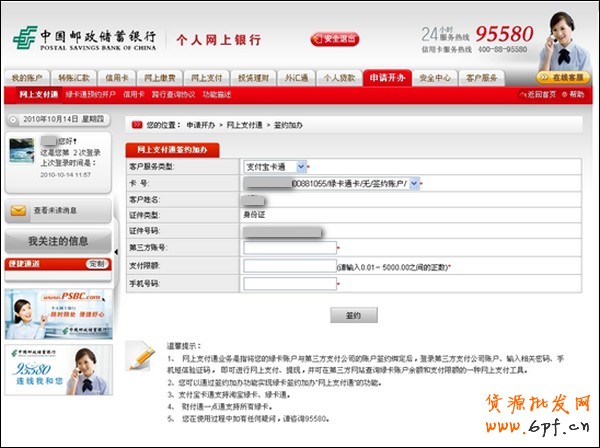 开通方式二:从邮储网上银行办理
