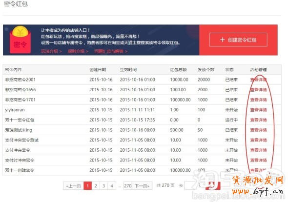 4、密令红包创建成功后,即可在列表查看详情和效果数据。