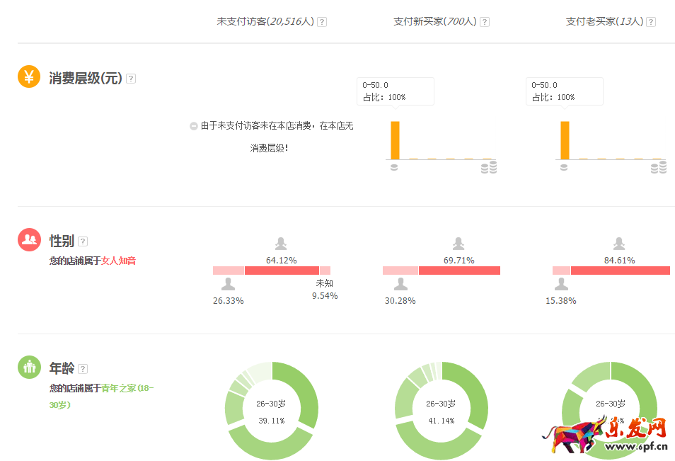 2、店铺特点:店铺消费层级大多是经济型,性别多数是女性顾客,年龄也多数是在18-30岁间。
