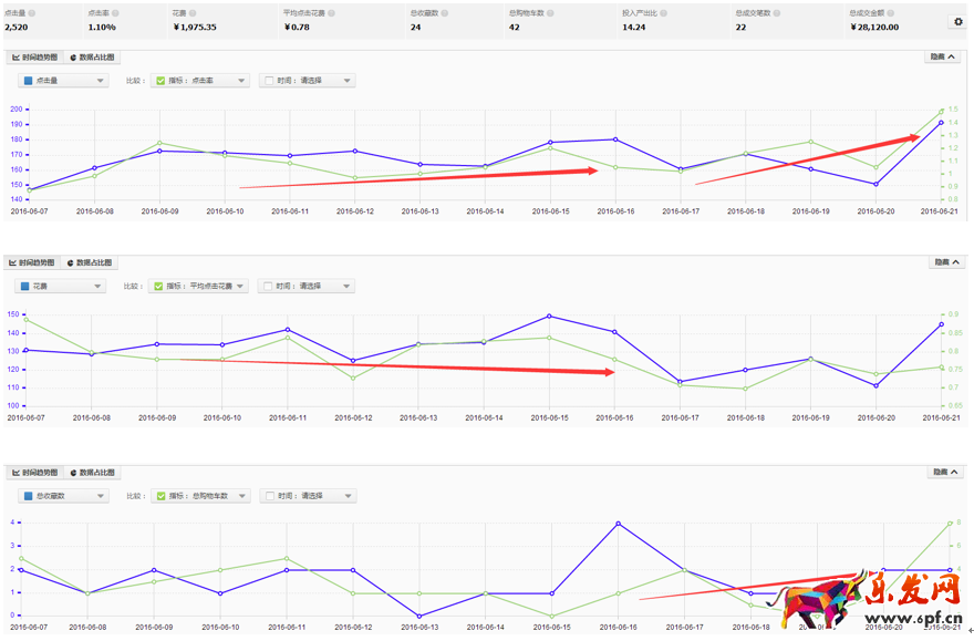 店铺淘宝直通车效果(刚接手推广时间不长,截取操作第一个双周的数据效果图)