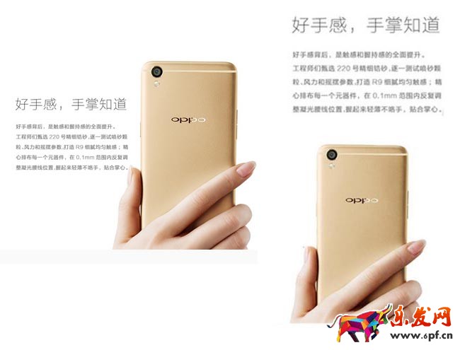 左上图是pc端的描述,图片当中,左边好手感,手掌知道,下面是一段文字,右边是一个女孩拿着一个手机进行展示,图片在pc端上面是横着的构图。