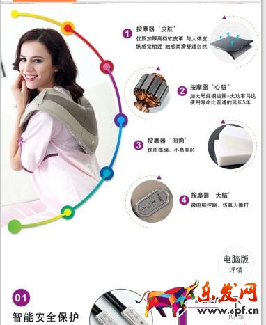4、排版:尽量上下排版、一个特点一屏、小特点半屏;
