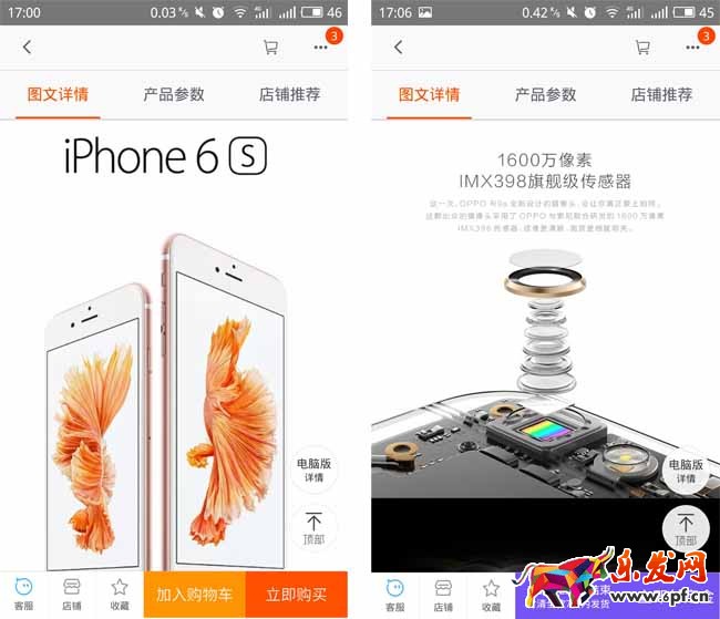 左上图iphone6s,这个主标题iphone6s就看得很清楚,如果说详情页当中都是这样的看的清楚的文字,买家体验就会更好一点。