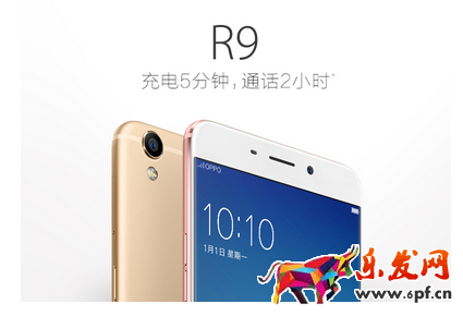 看这张图片,主标题R9,这是oppo的一个型号,下面充电5分钟,通话2小时,这是购买理由,这是大家耳熟能详的一个购买理由了,然后下面放上图片,这种图片的效果就不错,买家体验也会更好一些。