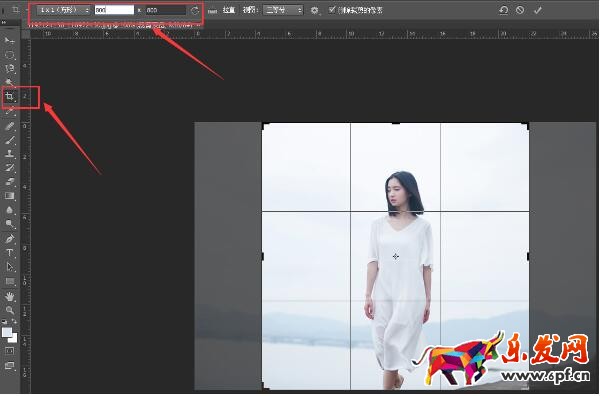 首先打开我们的ps工具,先开始处理横的长方形图片,一般这样图片我们可以通过裁剪工具对图片进行裁剪就可以了。选择裁剪工具,对你的图片大小设定一下,然后按enter键就完成了这张图片的处理,是非常简单的。