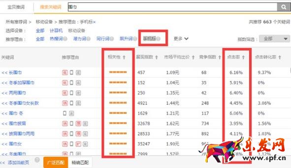 接下来我们就可以去投放做好的直通车图了,在直通车中新建推广宝贝,然后添加词,我们一定要添加一些跟我们产品相关度比较高的关键词,还有就是要选带有手机标的词,因为手机的点击要比pc的高而且展现要多,最好是系统推荐的5分手机词,点击率高的优先,数量越多越好,我们主要为了测图,所以词多一些展现会多一些。接着我们要把站外、智能投放和pc投放都关掉,我们需要我们的展现更多更精准。站外投放展现不精准,而pc端点击率过于低且展现量较移动端小的多。然后pc端的关键词出最低价,移动端关键词最好出到有排名的价格,但是也要根据自己的预算来出价。