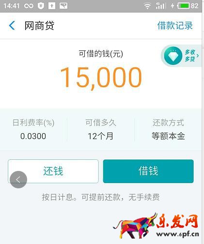 第三步:大家可以在这个界面看到自己可以借款的额度。以及借款的时长是多久,一般都是最长12个月。目前的借贷利率为万分之三,这个是日利息率,还款方式目前是等额本金的方式。大家只需要点击借款,就可以填写借款的额度,进行借款,再还钱的时候也在这个界面,大家点击还钱的选项,输入还钱数目,就可以进行还款了。