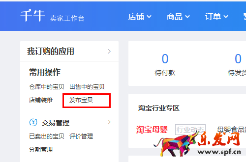 1、在淘宝页面中点击进入“卖家中心”,点击“发布宝贝”。