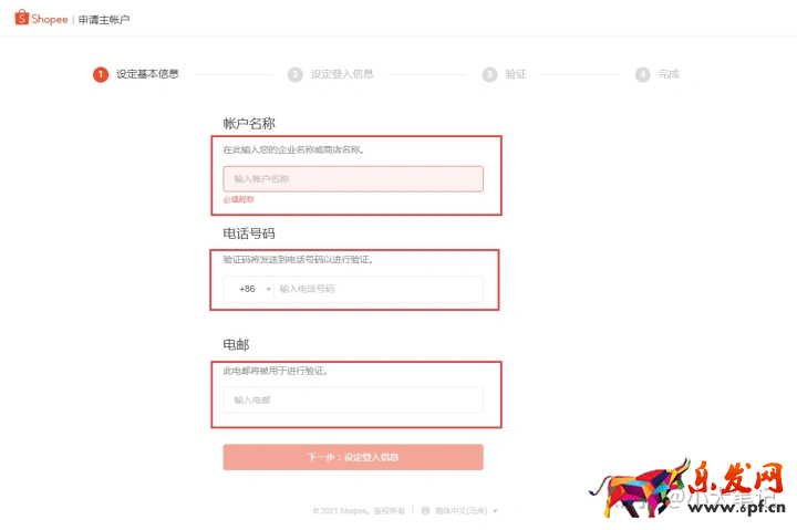需要卖家提供电话和邮箱用于绑定主账号,主账号用于管理新店申请,和之后所有的店铺运营,同时用于绑定收款账号。