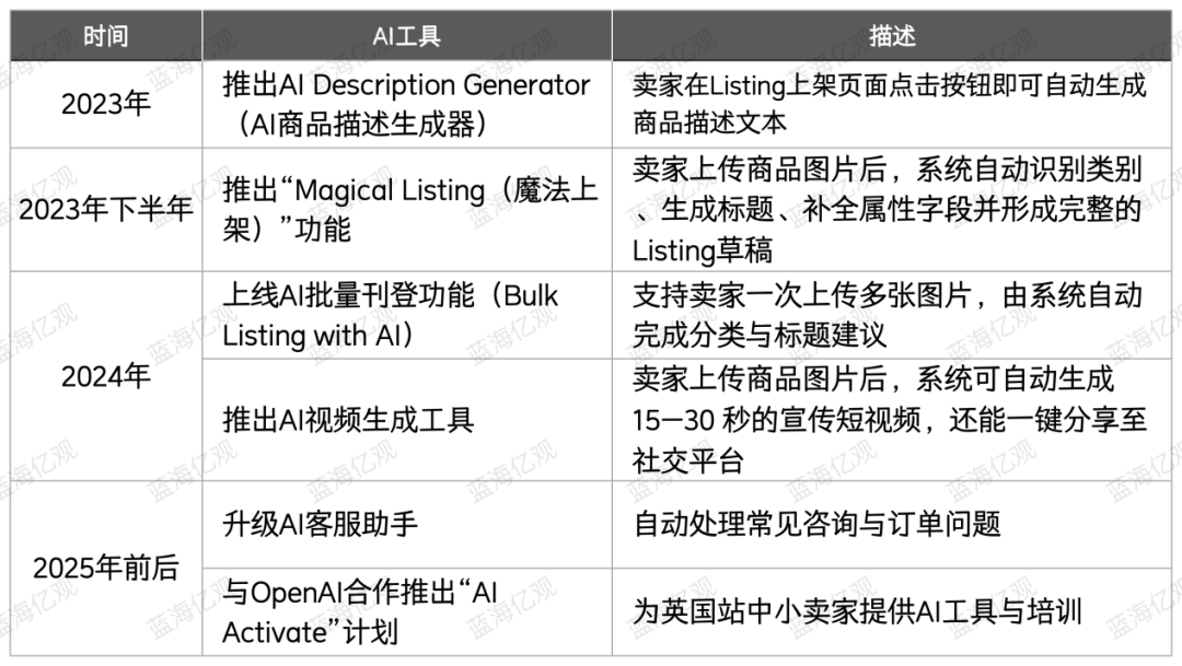 eBay的大部分AI工具是服务于卖家的“生产力工具”。比如,其推出的AI商品描述生成器、魔法上架功能、AI批量刊登等功能,这些都是帮助卖家提升运营效率的工具。