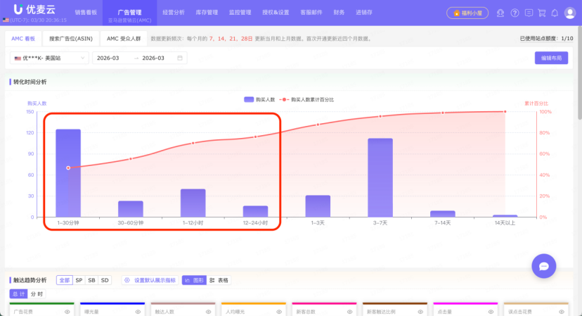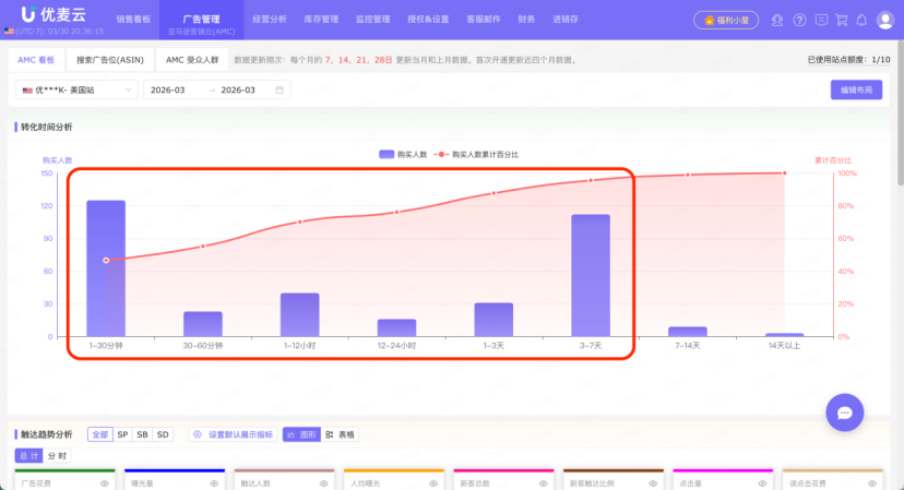 通过优麦云AMC功能的转化时间分析,你可以不再盲目投放,而是基于真实的数据去定义你的再营销节奏,让每一分广告费,都花在消费者动心的那一刻。