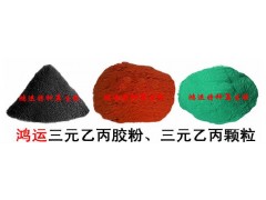 三元乙丙胶粉:CMC20121029河北鸿运再生胶厂生产彩色三元乙丙颗粒、60至120目彩色三元乙丙胶粉,产品具有颗粒均匀无粉尘、无杂质、比重轻、原料纯正、抗裂、抗紫外线、耐色变、耐光化、弹性好、长时间不会粉化或软化,保持色彩美观鲜艳。广泛应用于防水卷材、运动跑道、健身房、人造草坪、宾馆、道路、学校室内外场所,可根据您的需要生产任何颜色、品种、粒径的三元乙丙橡胶胶粉。